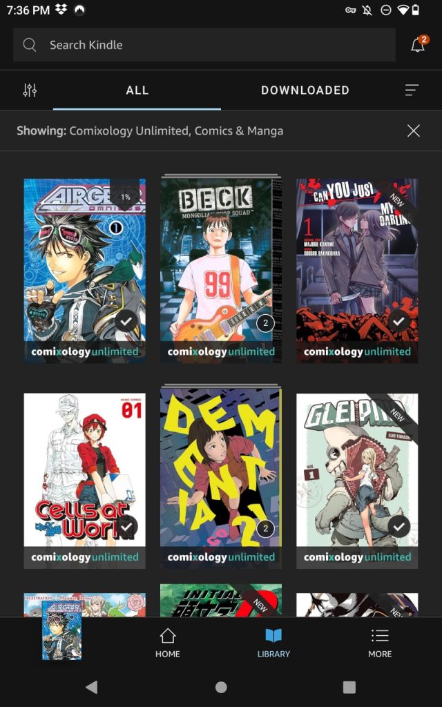 If you purchase any manga (or comics or even novels) through Kindle, you’ll see your Comixology Unlimited borrows right alongside them in the app (or on your Kindle e-reader). If you’ve already got a digital manga library through the platform, it’ll fit in seamlessly. And it’s possible to filter your library by your Comixology Unlimited borrows.